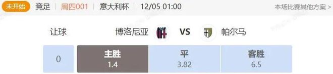 竞足 周四001 意大利杯 博洛尼亚VS帕尔马