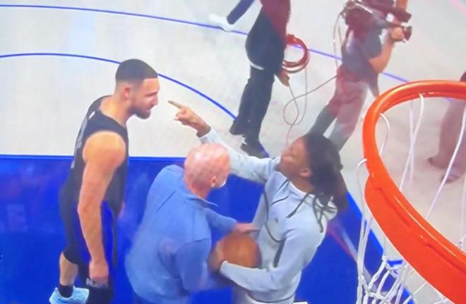 不过,这场比赛的焦点事件并非是比赛的胜利,而是在比赛结束之后,克莱·汤普森和贾·莫兰特的冲突。比赛结束之后的瞬间,并未上场的莫兰特就直接靠近克莱,用手指戳克莱的面部,并且直接喷出“你现在就是一个废物”。而克莱也没有惯着莫兰特,直接拍掉了莫兰特的手,并且和莫兰特脸对脸冲突,双方言辞激烈,一度要将冲突升级。